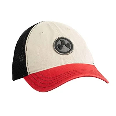 Magpul Trucker Hat Snap Back Baseball Cap, One Size Fits, Garment Washed Stone/Black/Red