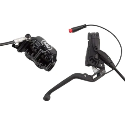 MT5e HIGO clasp, cable length 150 mm, 3 finger aluminium lever with ball head, can be used left/right, cable length 2200 mm, single brake, accessories included (VE = 1 piece) Ergonomic 2-finger aluminium brake lever. Carbotecture brake knob housing and handlebar clamp. Forged 4-piston brake caliper with banjo. MagnetiXchange brake pistons for easy paste change.