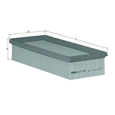 MAHLE engine air filter LX 719 // Dimensions (mm): L: 269 x W: 118 x H: 57 // Premium filter in OE quality High quality filter material for durability, meeting vehicle manufacturer’s quality, maximising fuel efficiency Captures up to 99.98% of toxic dust, soot, and tyre particles; High dust holding capacity Impregnated with special synthetic resin that increases the resistance of the filter to water and chemicals; Glue beads on the backs of the folds help the filter elements retain their shape Prevents premature wear of valves, cylinder surfaces, piston rings, bearings, and other engine components; Must be replaced at the intervals prescribed by the vehicle manufacturer
