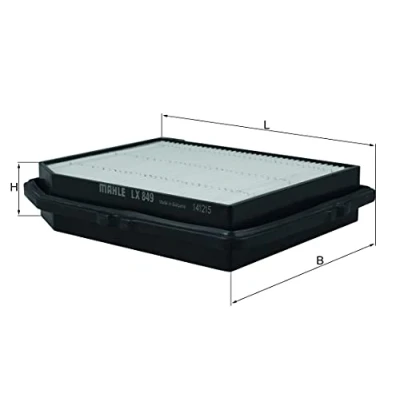 MAHLE engine air filter LX 849 // Premium filter in OE quality High quality filter material for durability, meeting vehicle manufacturer’s quality, maximising fuel efficiency Captures up to 99.98% of toxic dust, soot, and tyre particles; High dust holding capacity Impregnated with special synthetic resin that increases the resistance of the filter to water and chemicals; Glue beads on the backs of the folds help the filter elements retain their shape Prevents premature wear of valves, cylinder surfaces, piston rings, bearings, and other engine components; Must be replaced at the intervals prescribed by the vehicle manufacturer