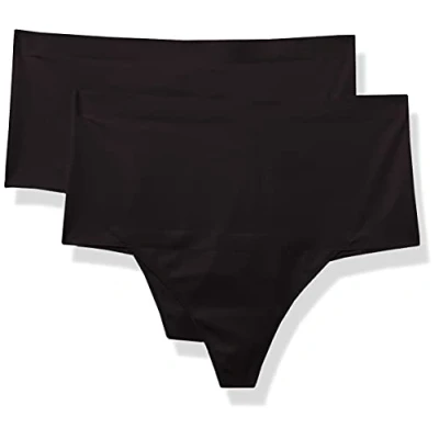 Maidenform Women's Cover Your Bases 2 Pack Thong Panties, Opaque, Black, XXL