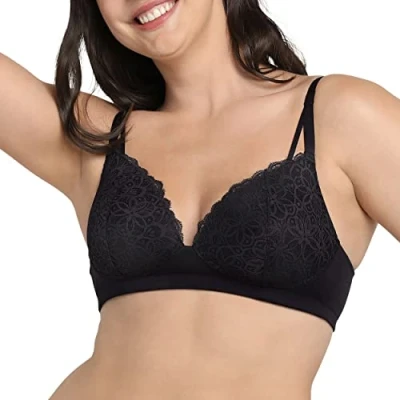 Eco friendly- super soft, recycled polyester and recycled lace. Beautiful double-strap front detail Extended frame - for support No side boning and wireless for all day comfort Ultra flattering intimate solution for every body Soft cups deliver shaping without wires Pretty lace bralette featuring an extended frame to provide support