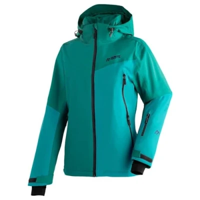Warm, Waterproof and breathable ski jacket for daily adventures on the slopes or dynamic freeride excursions with a protective snow guard Waterproof (10,000 mm), Windproof and particularly breathable thanks to mTEX weather protection, With 3 outer and 2 inner pockets for more storage space Innovative mTHERM insulation for particularly high heat retention, Superior comfort and freedom of movement thanks to 2-way stretch material Detachable and adjustable hood for an ideal fit, Cuffs with thumb hole, Width-adjustable cuffs, Width-adjustable hem Contents: 1 x Maier Sports Nuria, Women's Ski Jacket, PFC-free, Fit: Regular Fit, Colour: Green, Size: 36