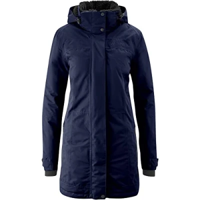 Waterproof and breathable outdoor coat with full weather protection for various outdoor activities or everyday wear Waterproof (10,000 mm) and windproof thanks to mTEX weather protection, Innovative mTHERM light insulation for high heat retention Detachable hood with individual adjustment options, Individually adjustable cuffs, Adjustable hem PFC-free finish, 2 side pockets with zip and 1 spacious inner pocket Contents: 1 x Maier Sports Lisa 2.1, PFC-free, Fit: Regular Fit, Colour: Blue, Size: 36