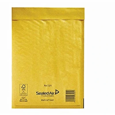 Mail Lite Gold Padded Mailing Bags, Size D/1, Gold, 181mm X 273mm, Box of 100