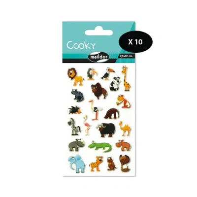Maildor 560389Cpack GOMMETTES 3D Cooky LOT DE 10 planches 12x8 cm 220 Stickers Savane