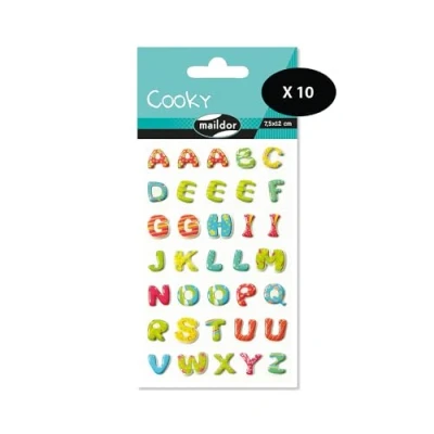 Maildor 560522Cpack GOMMETTES 3D Cooky LOT DE 10 planches 12x8 cm 350 Stickers Alphabet PEP'S