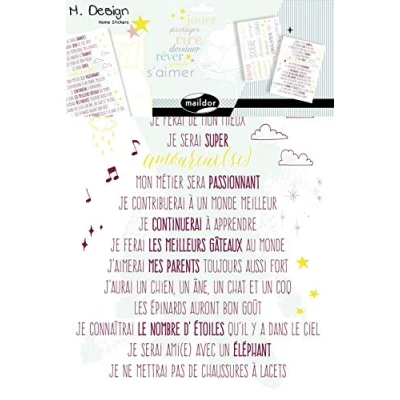 The Maildor brand is part of the Clairefontaine Rhodia range. Our creative hobby products are of high quality and meet your needs and requirements. Superb adhesive wall stickers to enhance your interior! Bring softness and poetry in your interior and let your emotions speak. Maximes, citations, mots gentils, lignes de vie… Autant de mots pleins de bon sens qui décoreront votre mur ! Number of boards: 2 - Dimensions of the board: 34.5x49 cm.