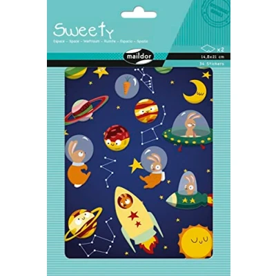 Maildor AE224C A bag of Sweety stickers Contains 2 sheets and 1 decorative sheet Space patterns 14.8 x 21 cm