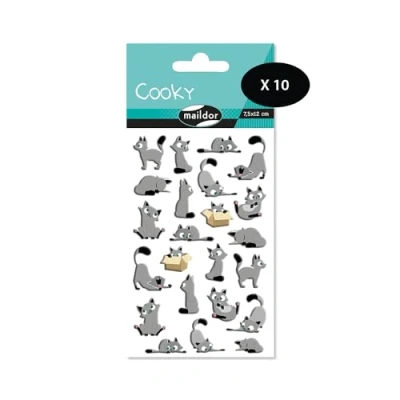 Maildor CY015Opack 1 Pack of Cooky 3D Stickers Sheet 7.5 x 12 cm, Small Cats (15 Stickers) 10