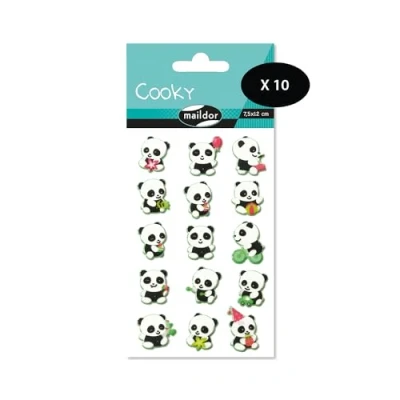 Maildor CY016Opack Pack of 10 Cooky 3D Stickers 1 Sheet 7.5 x 12 cm, Panda (15 Stickers)