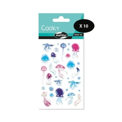 Maildor CY099Cpack GOMMETTES 3D Cooky LOT DE 10 planches 12x8 cm 310 Stickers MEDUSES