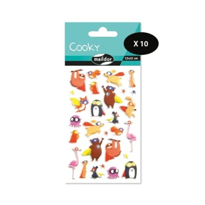 Maildor CY112Cpack 1 Pack of 3D Cooky Stickers Sheet 7.5 x 12 cm, Super Hero Animals (28 Stickers) 10