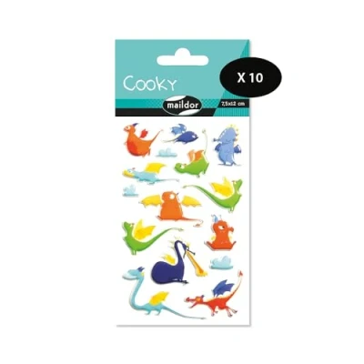 Maildor CY122Cpack Pack of 10 Cooky 3D Stickers 1 Sheet 7.5 x 12 cm, Dragons (15 Stickers)
