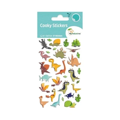 Maildor CY137Cpack Pack of 10 Cooky 3D Stickers 1 Sheet 7.5 x 12 cm Dinosaurs (31 Stickers)