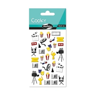 Maildor CY142Cpack Pack of 10 Cooky 3D Stickers 1 Sheet 7.5 x 12 cm, Cinema (25 Stickers)