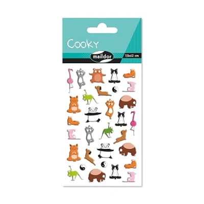 Maildor CY144Cpack 1 Pack of 3D Cooky Stickers Sheet 7.5 x 12 cm, Animals Yoga (25 Stickers) 10