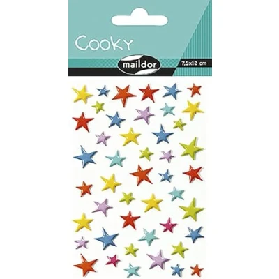 Maildor Ref 560501C Cooky Stickers (Single Sheet) 7.5 x 12cm Multicoloured Stars Designs Approximately 47 Stickers, 3D Suitable for Children Aged 3+