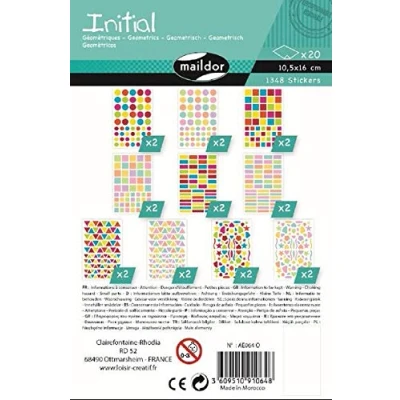 Maildor Ref AE064O Initial Stickers (Bumper Pack of 20 Sheets) Geometric Designs 16 x 10.5cm, Brightly Coloured Stickers, Contains 1348 in Total