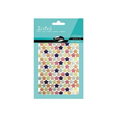 Maildor Ref AE170C Initial Stickers (Pack of 4 Sheets) Geometric Star Designs 16 x 10.5cm, Brightly Coloured Stickers, Contains 648 in Total