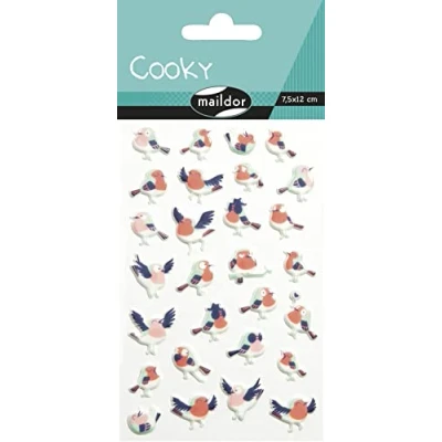 Maildor Ref CY126C Cooky Stickers (Single Sheet) 7.5 x 12cm Birds Designs Approximately 28 Stickers, 3D Suitable for Children Aged 3+