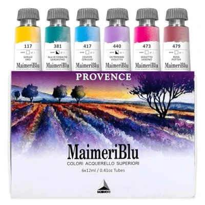 Maimeri BLU, Fine Art Watercolors, Set Provence, Cardboard Box, Assorted Colours, 6 Units 12 ml, Multicoloured, ml