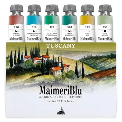 Maimeri BLU, Fine Art Watercolors, Tuscany Set, Cardboard Box, Assorted Colours, 6 Units 12 ml, Multicoloured, ml