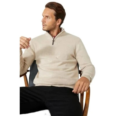 Maine Mens Premium Pure Cotton Half Zip Funnel Jumper Beige Size X Large