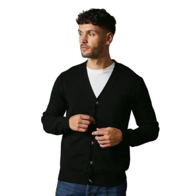 Maine Mens Premium Pure Cotton Knitted Cardigan Black Size 2XL