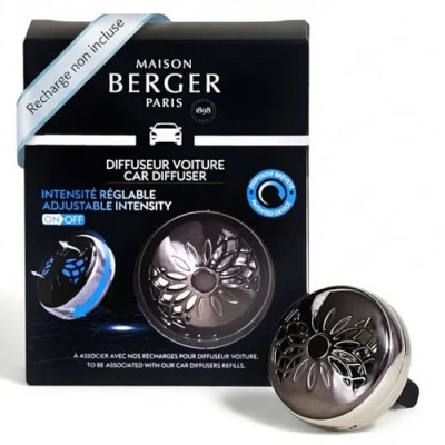 Car Diffuser - A take-anywhere fragrance diffuser that clips onto the air vent of your car. Design - Black & Argent Contains - Smart technical Car Diffuser WITHOUT perfume refills. Diffusion - Diffuses fragrance for 4-6 weeks in your car. Maison Berger Paris | Pur Art de Vivre - French expertise and know-how since 1898, labelled Entreprise du Patrimoine Vivant.