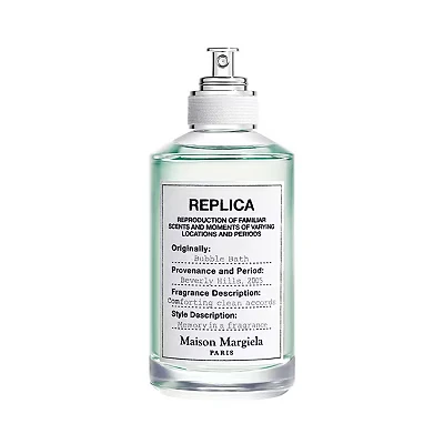 Maison Margiela Replica Bubble Bath is a delicate and soothing, floral woody fragrance for both men and women, launched in 2020. Inspired by the simple pleasure of a warm and relaxing bubble bath, the scent captures the essence of tranquillity and self-care. The fragrance opens with a refreshing and airy blend of bergamot and soap, which is quickly followed by a heart of floral and powdery notes, including jasmine, lavender and rose. The base is anchored by a soft and comforting accord of coconut and patchouli, with a hint of white musk adding sweetness and depth. The overall effect is a clean and calming scent that is perfect for everyday wear and for creating a sense of comfort and relaxation.