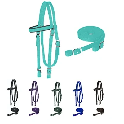 Superior quality highly durable 2 ply nylon construction Nickel Plated hardware, adjustable on both sides of the poll, Conway buckles at bit and rein ends which make changing bits quick and hassle free with no tools required Padded Browband for extra comfort to your horse Includes a pair of matching Reins for a comprehensive look Available in Black, Royal Blue, Chocolate, Purple and Hunter Green colors