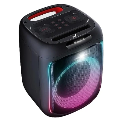 MAJESTIC FIRE 12 Bluetooth Speaker, Multicolour LED Lights, USB/MicroSD/AUX IN/MIC, Wired Microphone Included, Rechargeable Battery, TWS, Carry Handle