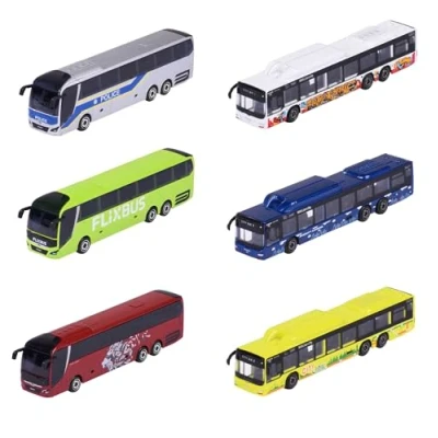 Please get in – the MAN Lion´s City C and MAN Lion's Coach L are indispensable from the streets - now the secret heroes of the road can also inspire as small model and toy buses. Loving design - 13 cm long, made of metal die-cast, with freewheel for great fun, detailed replica of the originals, available in 6 different designs - making collecting and playing fun! Various versions - Whether as a coach, police bus, city bus, long-distance bus, world travel bus or as a classic omnibus - everyone has its own charm and of course an official MAN licence. Ideal gift - Whether for ambitious collectors of model cars or for boys and girls aged 3 and up, the realistic and licensed models are the perfect gift for young and older car fans. Box contents: 1 x MAN bus, random selection between 6 different models (line bus, coach, police bus, city bus, long-distance bus, world travel bus), Manufacturer: Majorette