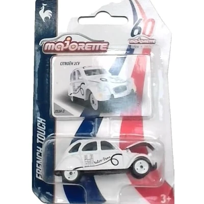Parisian chic - conquer the streets with French flair! The 6 detailed French Touch edition toy cars are a tribute to the origin of the Majorette brand: France! France everywhere - The licensed model cars in blue, white and red present the most famous landmarks of the city of Paris - with additional Paris lettering on the roof! 6 French car models - 1. DS 7 (Eiffel Tower), 2. Renault 4L (Place de la Bastille), 3rd DS 21 (Pont Neuf), 4. Citroën 2CV (Notre-Dame), 5. DS 4 (Moulin Rouge), 6. Renault Twingo (Sacré Coeur) Random selection. Please note: when ordering, you will receive one of the six model cars at random. Each vehicle (7.5 cm) is equipped with freewheel, suspension and partly with opening parts. Special collectibles - The small metal play cars are suitable for children aged 3 and up as well as adult France fans and model car collectors. Each car comes with a trading card., Manufacturer: Majorette