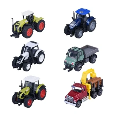 Off to the field - Whether tractor or transporter: the Majorette premium toy cars of the farm edition deliver officially licensed agricultural machines in a handy miniature format (7 cm) 1 car at random - get 1 of 6 cars: 1. Claas Arion 660 Tractor, 2. Claas Xerion 5000 Tractor, 3. New Holland T7.330 Tractor, 4. Valtra T4 Tractor, 5. Unimog U530 OR 6. Mack Granite Truck Unshakable and ready to work - freewheel, robust metal parts and rubberised tyres ensure grip and endurance. The Mack truck even comes with movable crane arm, trailer and wood load! Ideal as a farm accessory - thanks to the faithful design and strong details, the tractors and trucks fit perfectly as a complement to all farm play sets for girls and boys aged 3 and over Majorette - Genuine original. Genuine Metal Real MEGA! The ignition key for mega gaming experiences and collecting fun: since 1964, the cult brand from France has been bringing cool vehicles into the children's room. Ready for the Ride?, Manufacturer: Majorette