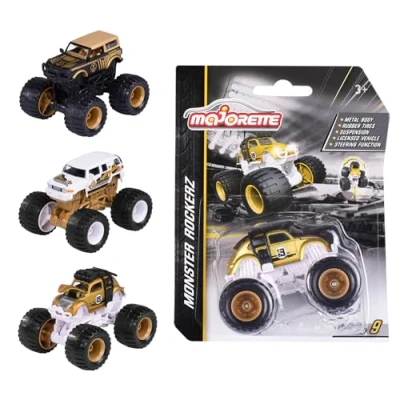 Majorette Gold Rockerz Monster Trucks 1 of 3 Random Toy Cars, Metal and Plastic Truck with Steering Function, Freewheel Suspension for Children Aged 3+