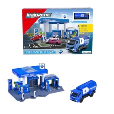 Full filling once Tank of new ideas: the playset with washing station, charging columns, shop and more ensures very cool experiences thanks to the moving parts, with additional play surface to be cut to size PETROL DRIVES - In classic ARAL blue, the tank truck reliably delivers fresh fuel. The vehicle features a freewheel, a stable metal body and an original print Ideal for little car fans Majorette - Genuine original. Real metal Real mega. The ignition key for mega play and collecting experiences: since 1964, the French cult brand has been bringing cool vehicles into your child's room. Ready for the ride?, Manufacturer: Majorette