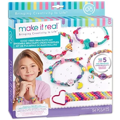 Summer time: create five colourful bracelets with cute pendants in a cool summer look. Wear your self-designed ellery yourself or give it to your friends Get creative. Making your own ellery creations with the help of the DIY set promotes creativity, fine motor s as well as visual and cognitive s of children. Complete craft set: this craft kit contains everything you need to create unique pieces of ellery. Includes 7 different colours of cotton thread (20 metres), glitter thread in 3 different colours (6 metres), silver metal thread (1.5 m), 1 heart shaped eyelet, 38 beads, 2 pendants, 2 bead charms, 1 threader, 1 craft tray and instructions. Great gift idea: "Make It Real" stands for creative toys that support the development of children - with a focus on girls aged 8-12 years. The ideal gift for girls to discover their talents and ambitions Recommended for children aged 8 and over