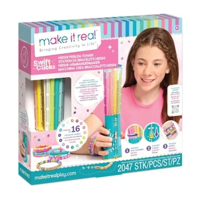 CREATE JEWELRY FAST AND EASY: A machine that allows you to thread Heishi beads by choosing the color. Simply wind and twist to decide what the next beads will be in your jewelry ALL PIECES INCLUDED. This bracelet kit has everything you need to make jewellery. The set includes over 2000 heishi beads, cord over 6 m, heishi bead threader machine QUALITY AND ECO-FRIENDITY: The Make It Real world takes children and adults on an exciting journey to discover creativity and fashion. Production according to environmentally friendly guidelines plays an equally important role as the purity of the materials used. Every single product meets the highest quality standards and is the result of a passionate craftsmanship tradition. A wonderful gift idea. Make It Real children's development games are the perfect gift idea as they allow them to develop learning skills that will succeed as they grow up while having fun playing. DISCOVER AND CREATIVITY PASSIONY: Creating your own jewellery with the help of the DIY kit stimulates creativity, fine motor skills and visual and cognitive abilities. With the instructions included, easily learn an art that will accompany you into the future. MAKE IT REAL BRAND: The gateway to creativity, the world of beads! Play and experimentation play a key role in developing and refining physical, social and emotional skills that will help today's girls succeed as future leaders and creators of tomorrow – that's the purpose of our kits and games! From 8 years, Manufacturer: Make It Real