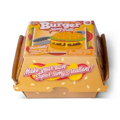 CREATIVE PLAY SET: Complete burger-themed slime kit featuring colourful putty layers, decorative confetti, and special tongs for interactive sensory play CONTENTS: Includes multiple slime colours mimicking burger ingredients - brown, green, red, and yellow putty layers packaged separately for freshness PACKAGING: Arrives in a charming burger box-style container, perfect for storage and adding to the imaginative play experience INTERACTIVE DESIGN: Special tongs included for handling and stacking slime layers, enhancing fine motor skills and creative play SENSORY EXPERIENCE: Various textures and colours of putty provide engaging tactile stimulation and imaginative play opportunities, Manufacturer: One for Fun