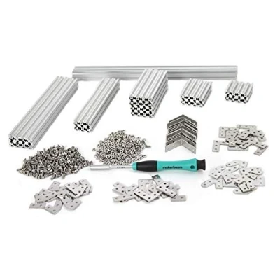 MakerBeam Starter Kit consisting of 50 Mini T-slot profile beams (4x300mm, 8x200mm, 6x150mm, 16x100mm, 8x60mm, 8x40mm), 60 brackets (24x90°, 12x60°, 12x45°, 12x corner bracket), 250xsquare headed bolts (M3), 250xnuts (M3) and 1 hex nut driver; additional elements can be ordered individually MakerBeam enables professional prototyping and provides mechanics for any electronics project All MakerBeam elements can be easily combined and reused (no welding required) enabling shorter design and assembly times MakerBeam has a low weight structure and high loading capacity International products have separate terms, are sold from abroad and may differ from local products, including fit, age ratings, and language of product, labeling or instructions., Weight: 3.23875 Pounds, Manufacturer: MakerBeam