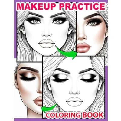 Makeup Practice Coloring Book: 50 Open & Closed Eye Face Templates for Teens, Adults, and Kids Fun Art Beginners, Aspiring Artists, Professionals Charts Beginners