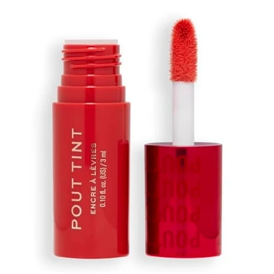 Makeup Revolution, Pout Tint, Lightweight Lip Buildable Colour, Hydrating Formula with Gloss to Stain Finish, Sweetie Coral, 3ml