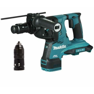 General description Powerful and versatile, the MAKITA DHR281Z Hammer features a 36V BL motor that operates using two 18V batteries, allowing for flexibility with different amperage batteries. It offers three working modes: rotation, percussion, and rotation + percussion, making it suitable for various applications. The hammer is designed with operator safety in mind, incorporating an electric brake and a torque limiter that stops rotation if the bit binds, enhancing both safety and motor protection. Additionally, the AVT technology significantly reduces vibrations, while the XPT technology protects the tool from dust and water exposure. LED lights with pre- and post-flash functions ensure visibility in low-light conditions.