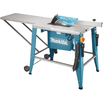General description This Makita 2712/2 315mm Site Saw is the 110V version, designed for high performance and durability. It features a heavy-duty induction motor that ensures a long, maintenance-free service life. The saw is equipped with two wheeled legs for easy mobility and two long carry handles for safe and comfortable lifting. The robust steel plate table and extension table provide a stable work surface, and it can be connected to a dust extractor for a cleaner working environment. Technical specifications Input Power: 110V 1,650W No Load Speed: 2,950/min Main Table Dimensions: 550 x 800mm Rear Extension Dimensions: 400 x 800mm Cutting Depth: @90° 85mm, @45° 58mm Bevel Capacity: 0°-45º Disc Diameter x Bore: 315 x 30mm Weight: 54kg Compatibility and accessories 1 x Carbide Tipped Blade 315 x 30mm x 40T 1 x Rip Fence (Guide Rule) 1 x Push Stick 1 x Push Block 1 x Wrench 1 x Extension Cable