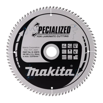 260mm diameter, 2.5mm kerf, 30mm bore, 84 teeth, 1.8mm thickness and 5 degrees rake Suitable for mitre saws for cutting laminate Equipped with ultra non-friction coating Unique triple chip grind tooth configuration, Weight: 1.56969130544 pounds, Manufacturer: Makita