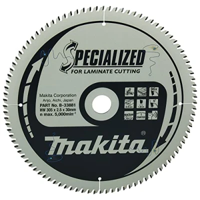 305mm diameter, 2.5mm kerf, 30mm bore, 96 teeth, 1.8mm thickness and 5 degrees rake Suitable for stationary saws for cutting laminate Equipped with ultra non-friction coating Unique triple chip grind tooth configuration, Weight: 2.645547144 pounds, Manufacturer: Makita