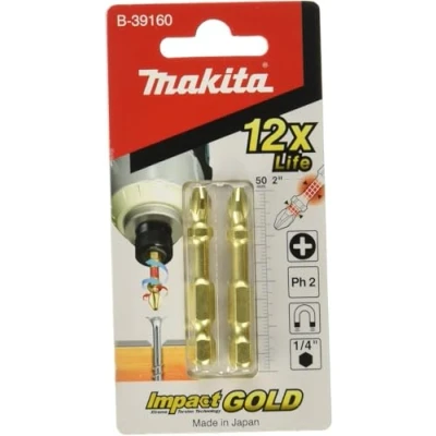 Robust Tatara steel Lasts up to 10 times longer than a regular screw Bit Lasts up to 15 times longer when coupled with an impact Gold torsion bit holder (not included) Size PH2 Length 50mm Pack quantity 2, Weight: 0.007 Pounds, Manufacturer: Makita