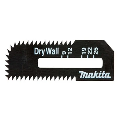 General description For straighter, more accurate cutting in installed drywall, you can rely on these Makita Cut-Out Saw Blades (B-49703). Ideal for cut-outs and repair applications, these blades will cut drywall board up to 1-3/16” thick. Designed for use with Makita model XDS01Z, these blades are constructed with durable high carbon steel and feature depth markings for easier adjustments. Technical specifications Maximum cutting thickness: 1-3/16” Material: High Carbon Steel (HCS) Compatibility and accessories Compatible with Makita Cordless Cut-Out Saw model XDS01Z Usage Ideal for making precision cuts in drywall Depth markings on blade allow for easy adjustments
